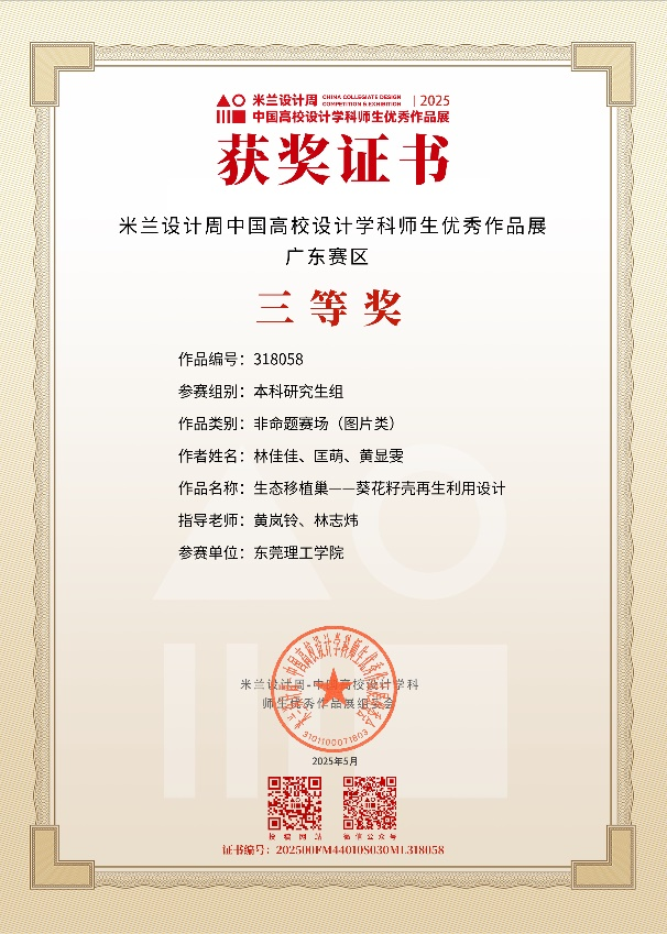 2025第九届米兰设计周-中国高校设计学科师生优秀作品展《全国普通高校老员工学科竞赛排行榜单》与《公司B类赛事》,近日省赛获奖公布!黄岚铃老师、林志炜老师共同指导员工,荣获3个二等奖、5个三等奖,共8个奖项!其中,3个二等奖将上推至国赛。
