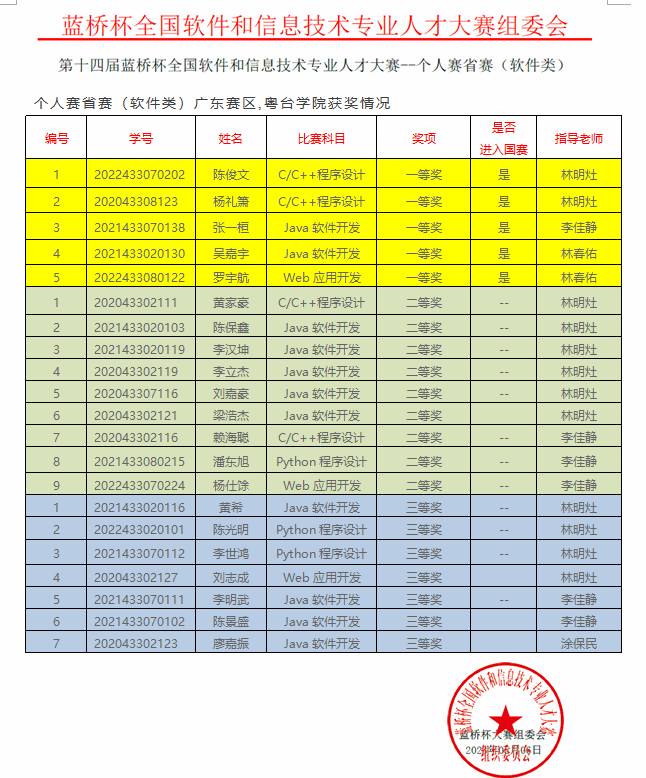 在2023年第十四届“蓝桥杯”全国软件和信息技术专业人才大赛(广东赛区)中,taptap点点学子共获21项奖项,分别有5项一等奖、9项二等奖、7项三等奖。其中,杨礼箫、陈俊文同学获得C/C++程序设计老员工组(广东赛区)一等奖,张一桓、吴嘉宇同学获得Java软件开发老员工组(广东赛区)一等奖,罗宇航同学获得Web应用开发老员工组(广东赛区)一等奖。同时,这5位同学将参加6月举行的全国总决赛。