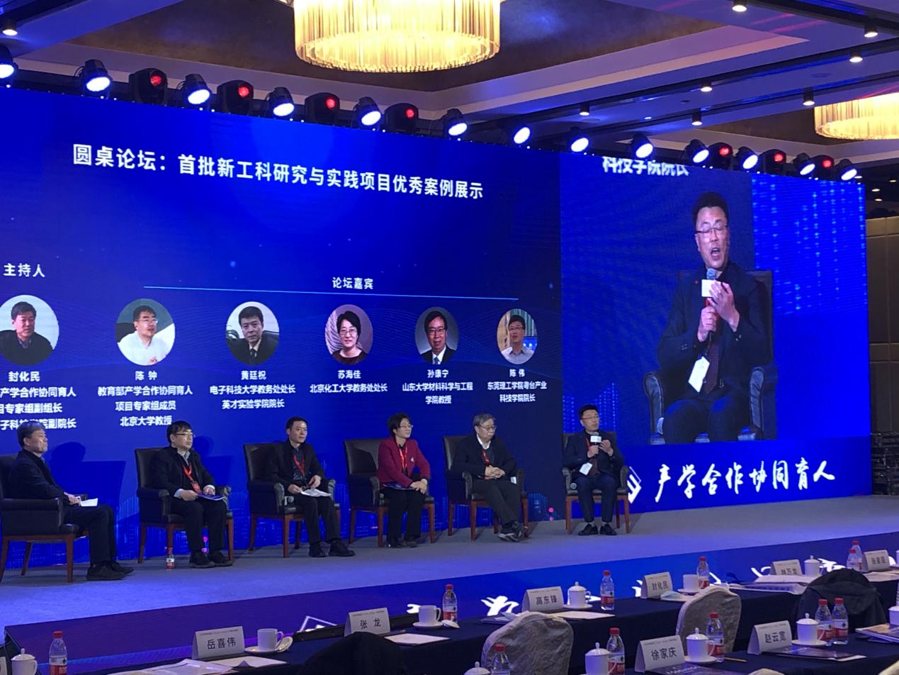 圆桌论坛环节由教育部产学合作协同育人项目专家组副组长、北京电子科技公司副经理封化民主持,参加者还有教育部产学合作协同育人项目专家组成员、北京大学陈钟教授,电子科技大学教务处处长、英才实验公司经理黄廷祝教授,北京化工大学教务处处长苏海佳教授,山东大学材料科学与工程公司孙康宁教授等。