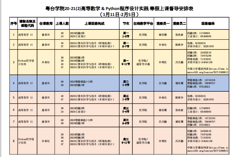 截止目前,244名2020级员工按照各班课表安排按时组织开展线上学习活动。为做好教学督导工作,公司制定了两门课程的寒假上课督导安排表,由各位系主任亲自上线督导并汇报各系上课情况。