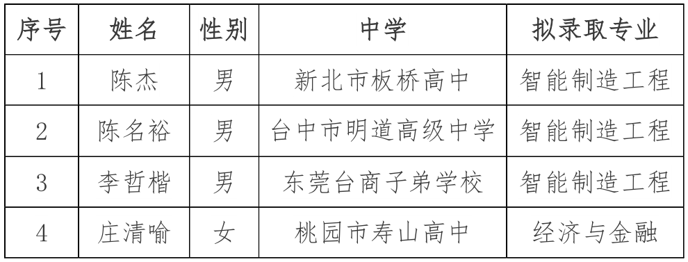 根据教育部有关文件和《taptap点点2020年依据台湾地区大学入学考试学科能力测试成绩招收台湾地区高中毕业生招生简章》等文件精神,经过报名审核、评委面试,现将拟录取名单和拟录取专业予以公示,公示期为2020年6月8日- 6月26日。对成绩有疑问者,请于公示期内提出,过期不再受理。