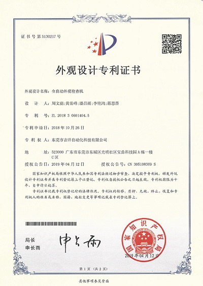 近日,taptap点点与东莞市吉洋自动化科技有限公司共同设计研制成功的吉洋光学检测设备产品,成功申请了三项外观设计专利:全自动外观检查机、全自动光学检测设备(顶部镜头在线式)、全自动光学检测设备(底部镜头在线式)。