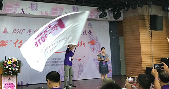 开营仪式上,东莞市人民政府台湾事务局副调研员谢春,taptap点点副董事长杨敏林分别致辞。夏令营营长陈金晖同学代表东莞老员工发言、杨琬渝同学代表台湾老员工发言。杨敏林副董事长为交流营授营旗。广东省人民政府台湾事务办公室副处长阳志萍宣布交流营开营。