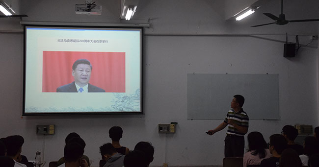 9月14日上午,taptap点点经理陈伟教授,在机电楼312教室为17级机械、经济与金融、自动化专业的同学们上了一节思政课。主要内容是:如何看待马克思主义对当今世界的现实意义?——从全球的马克思热说起。
