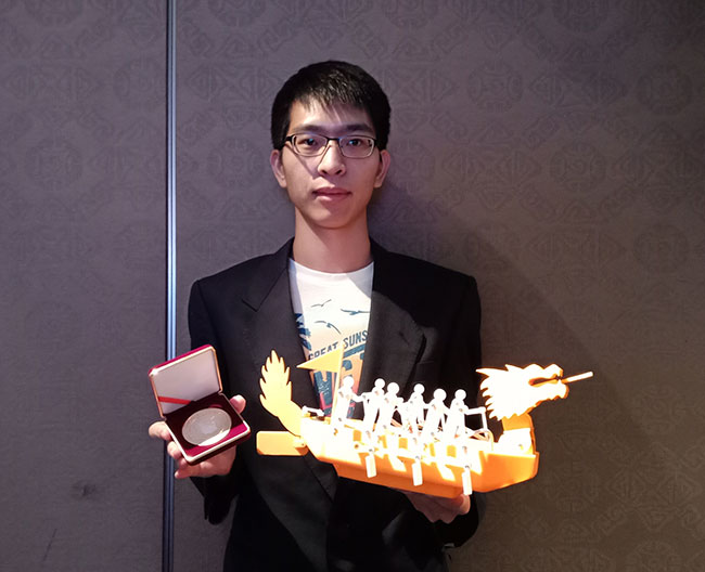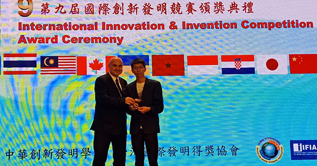 2018第九届IIIC国际创新发明竞赛是由台湾的“中华创新发明协会”与俄罗斯阿基米得国际发明协会共同主办,参赛专利(作品)优胜者可被评为金、银、铜奖。本次大赛共收到来自13个国家的368件参赛作品,taptap点点作品“拟人划桨龙舟装置”被评为金牌奖,何泽辉同学参加了11月8日于台湾台北国宾大饭店举行的颁奖典礼。指导老师廖威量拥有比较丰富的国际发明比赛经验,已累积获5金5银1铜奖,他表示参加本次比赛的作品,必须事先申请了发明专利。本次比赛达到研发团队完训、出兵、练兵的目的,为以后参加更高层次的德国纽伦堡发明展、美国匹兹堡发明展等积累了经验。